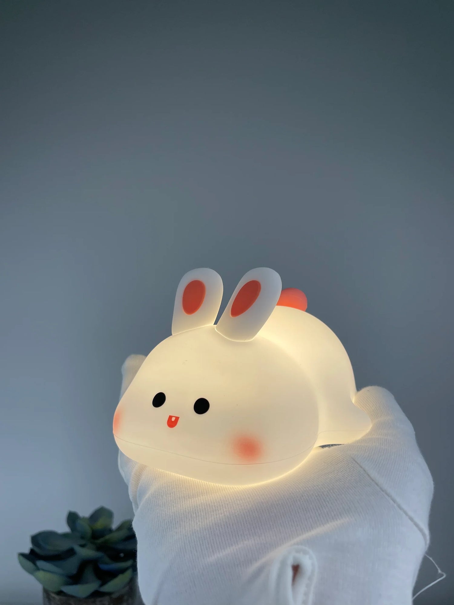 Yumuşak tavşan şeklindeki lambamızla sıradan bir odayı büyülü bir yere dönüştürün!Yumuşak ışığı, yatmadan önce hikayeler okumak veya arkadaşlarla oynamak için rahat bir ortam yaratacaktır.Güvenli malzemelerden yapılmış olan bu lamba, odada kullanım için idealdir.Yumuşak tavşanımızla küçüklerinize ışığın büyüsünü verin!